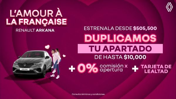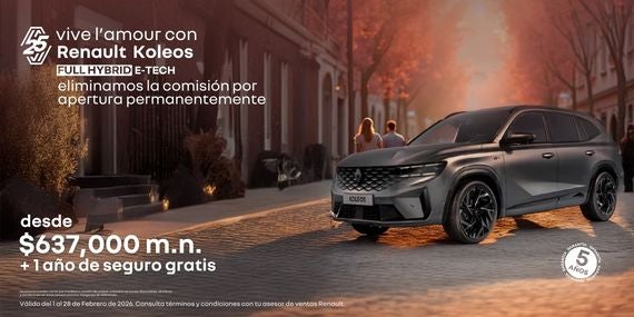 Descubre el lujo, la tecnología y el desempeño con la Renault Koleos Techno y Alpine. Aprovecha esta oferta exclusiva: recibe un bono de hasta $62,000, además de 0% comisión por apertura, un bono de retoma de $20,000 y $10,000 de apoyo a tu apartado. Suma también los beneficios de la Tarjeta de Lealtad. Sofisticación, potencia y una promoción que enamora. ¡Estrena el placer de conducir!