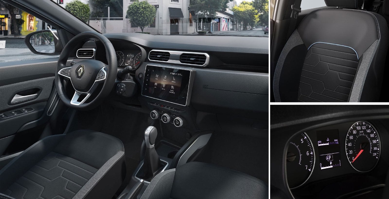 El interior de la nueva Renault Duster refleja su dinamismo. La espaciosa cabina es moderna y cómoda. Los asientos del conductor y del pasajero ofrecen un amplio soporte para garantizar su comodidad. La nueva tapicería con asientos de tela e insertos tipo piel*, va en armonía con los paneles de la puerta.